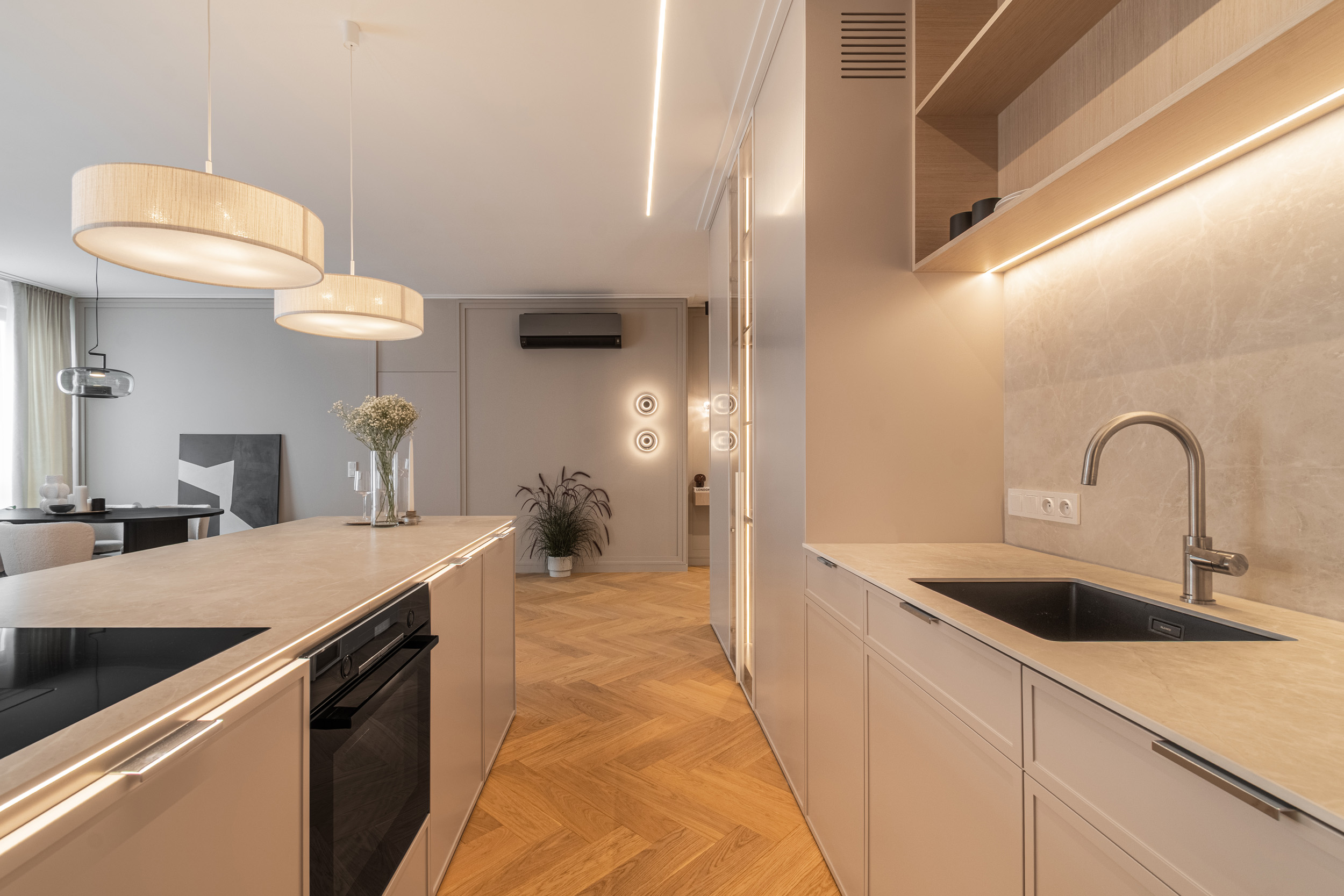 Luksus, perfekcja i dbałość o każdy detal. Penthouse na Żoliborzu to projekt wymagający najwyższej precyzji i kunsztu wykonania, łączący nowoczesny design z ekskluzywnymi materiałami i zaawansowanymi technologiami.